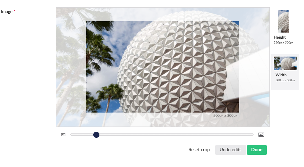 If your system administrator has set up cropping for your images, you will see a similar interface when you edit your images: