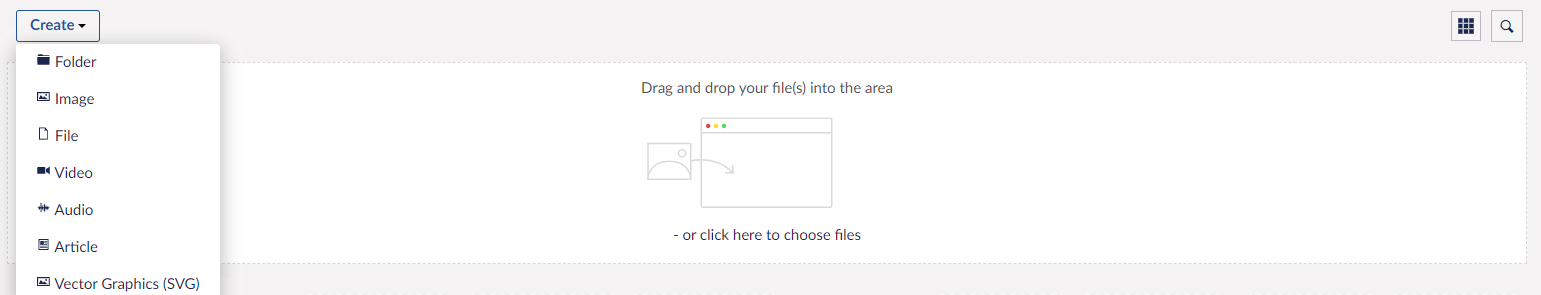 Click Create to add another media type or drag and drop your files into the Upload field.